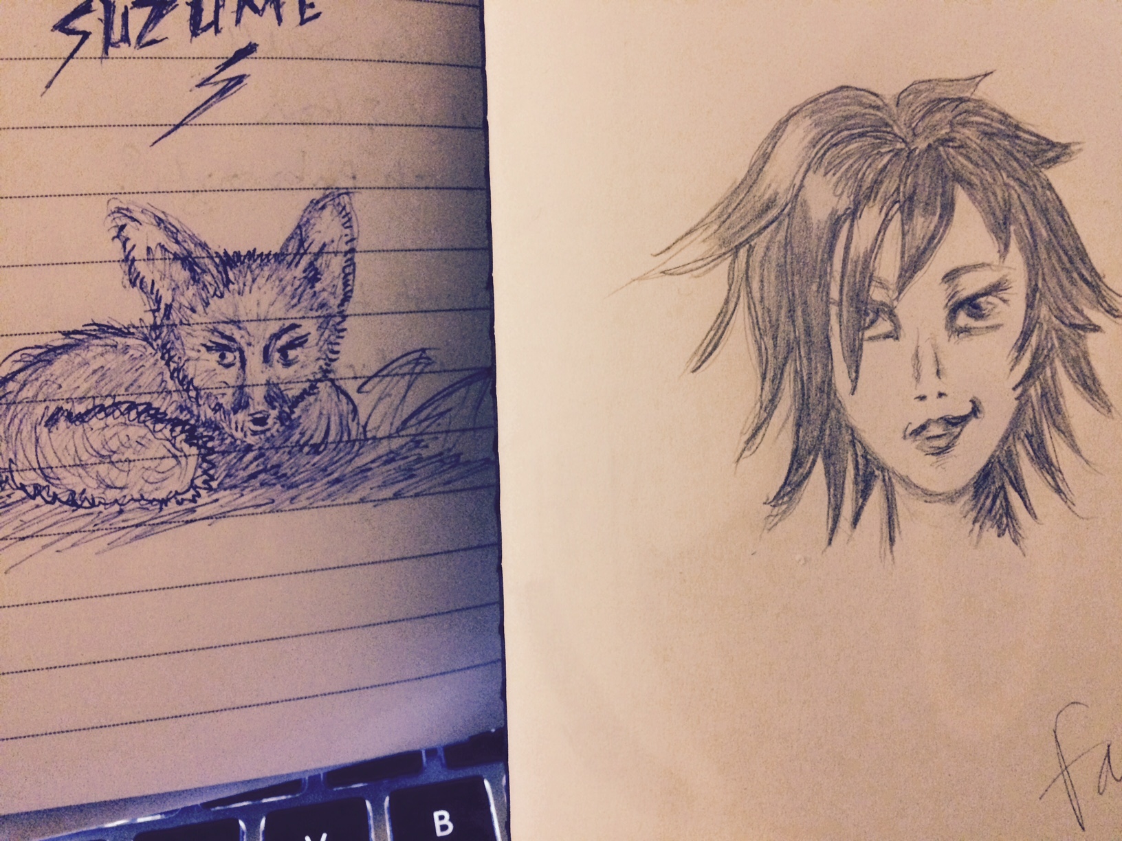 inspiration for a little sketch or doodle from your last week’s reading or just anything else in general. So, this week I’ve been reading about all the creepiness! Mainly focusing on vampires. However, I couldn’t come up with a drawing of a vampire in my tiny brain. Instead I thought I’d try a character from Generation V by M L Brennan – a shapeshifter called Suzume. I loved this book and I thought Suzume was an amazing character. The one on the left was my first attempt to try and draw a foxy/sassy character – and also I tried to jot down a fox. The pencil was my second attempt which I attempted because the others were on lined paper! My husband didn’t really like the second attempt! I guess the first one looks a bit more cartoony – but what is the hair about. The problem is with pen – once you’ve created an outline you’re pretty much stuck with it! On reflection I don’t think this is how I pictured Suzume – but, at least there’s a scruffy looking little fox!