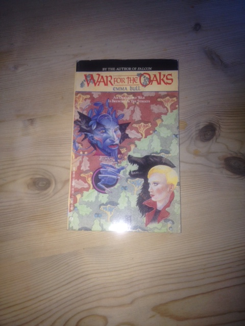 Something old: War of the Oaks by Emma Bull. This is a little bit beaten up but I like well read books: